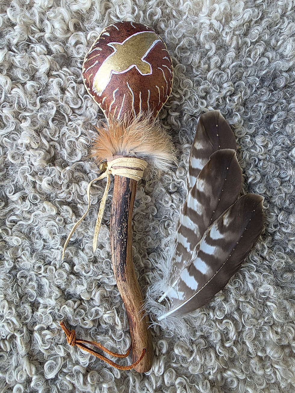 Ett kraftverktyg eller medicinverktyg kan vara en skallra, featherfan eller en påse att ha dina magiska stenar i, örtknyten snäckor eller annat som är "heligt" för dig att ha i behandling eller ceremoni.